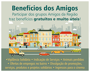 • Vigilância Solidária • Indicação de Serviços • Animais perdidos • Ofertas de empregos no bairro • Divulgação de promoções, serviços, produtos e projetos solidários • Ingressos para o cinema